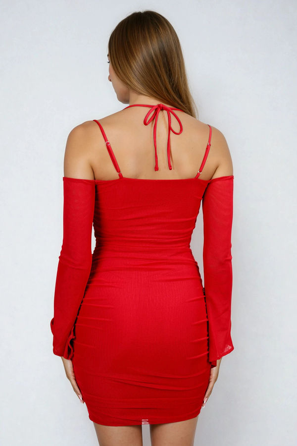 Glow Bright Halter Cowl Bodycon Mini Dress - Deep Red