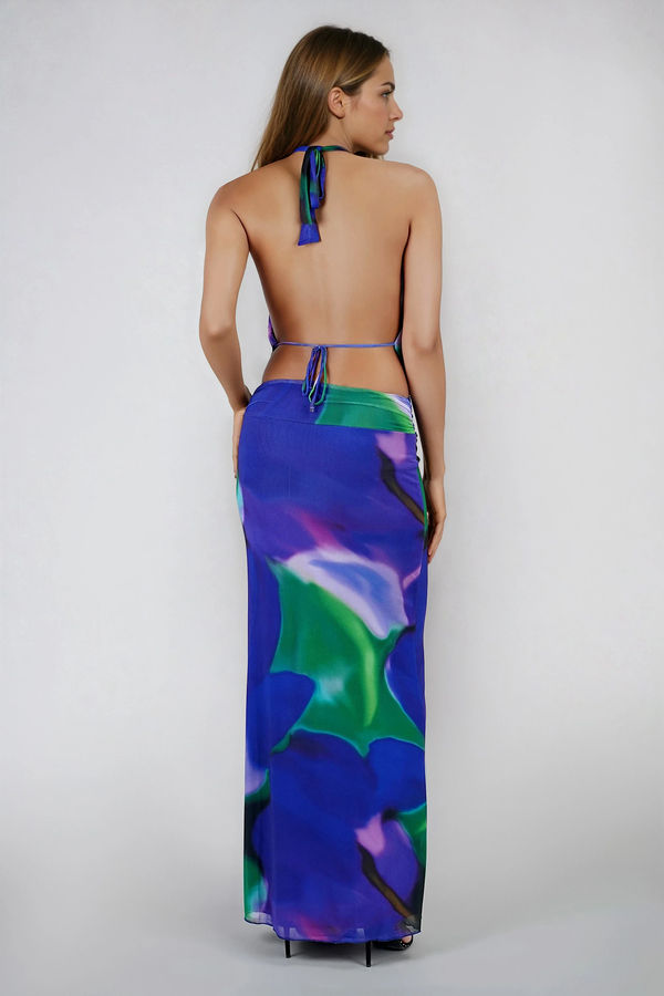 Blushing Bloom Cowl Backless Maxi Dress - Blue Multi