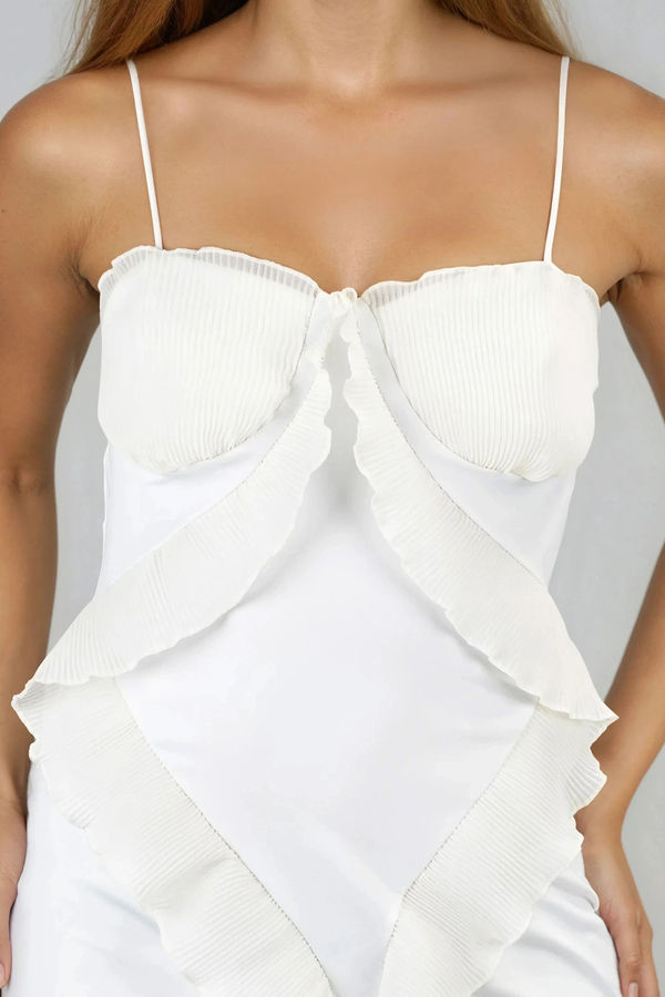 Float into the spotlight in the One More Kiss Sweetheart Ruffle Maxi Dress in White, an ultra-flattering silhouette designed to hug, shape, and flow in all the right places. Featuring a structured sweetheart bodice, delicate straps, cascading ruffle details, and a sultry side slit, it moves beautifully with every step. Effortlessly romantic yet confident, it’s perfect for weddings, formal events, date nights, graduations, and special celebrations that call for unforgettable style.