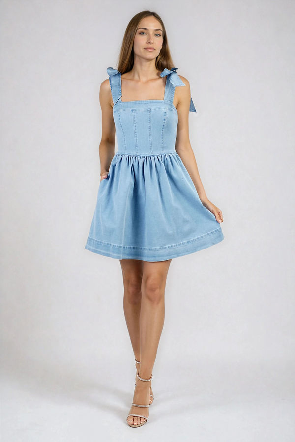 Serve Vibes Shoulder Tie Denim Mini Dress - LT Denim