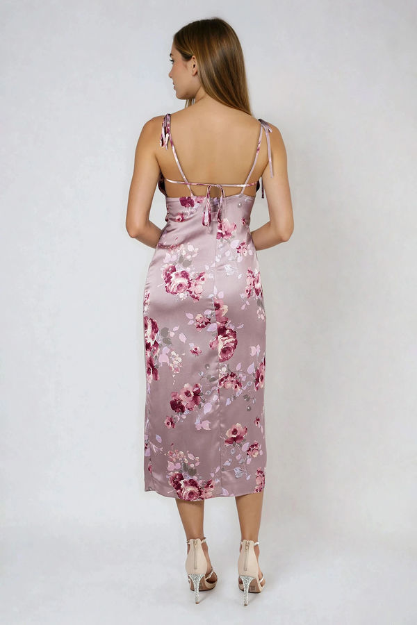 Fresh Start Floral Satin Midi Dress - Mauve Floral