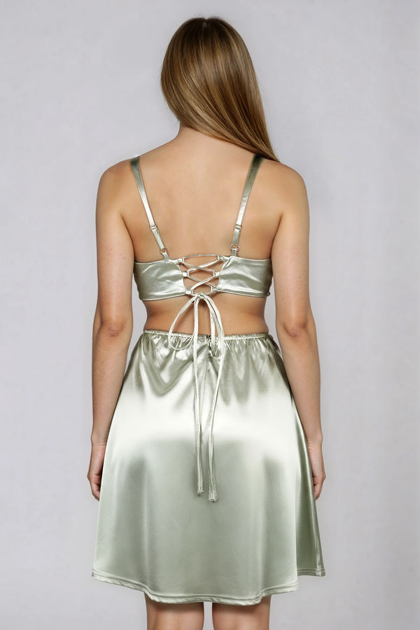 Polished Glow Cutout Satin Mini Dress - Green