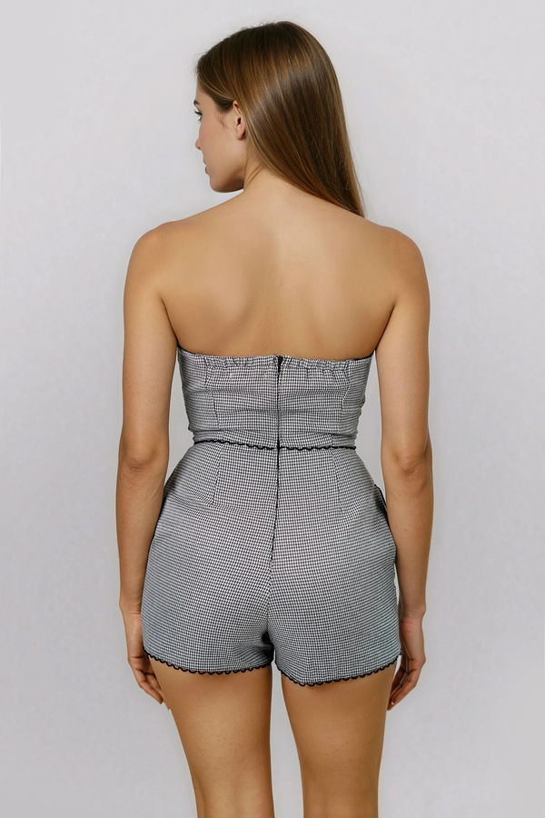Sweet Vibes Strapless Houndstooth Romper - Grey Black