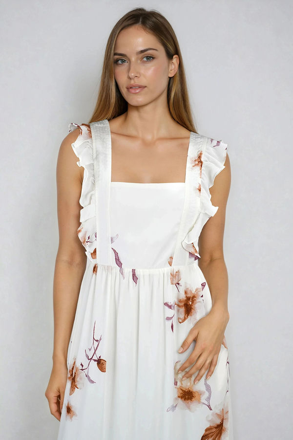 Flirty, flowy, and made to move with you, the Bloom Bright Floral Tie-Back Maxi Dress in Cream Brick brings effortless charm to every step. Designed with a flattering square neckline, playful ruffle straps, a breezy tiered skirt, and an open-back tie detail, it strikes the perfect balance of sweet and confident. Lightweight and easy to wear, it’s ideal for brunch dates, garden parties, baby showers, weekend getaways, or any sunny-day plan that calls for a little twirl.