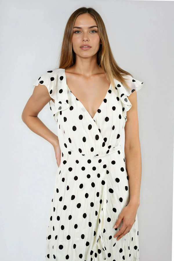 Float into any brunch date, garden party, or daytime soirée in the Feel the Who’s Blushing Now Polka Dot Wrap Maxi Dress in Cream Black. Designed with a flattering V-neckline, soft flutter sleeves, and a flowy high-low hem, it cinches at the waist for an easy, confidence-boosting fit. The playful polka dot print adds timeless charm, while the lightweight fabric moves beautifully with every step—effortless, feminine, and made for twirling through your plans.