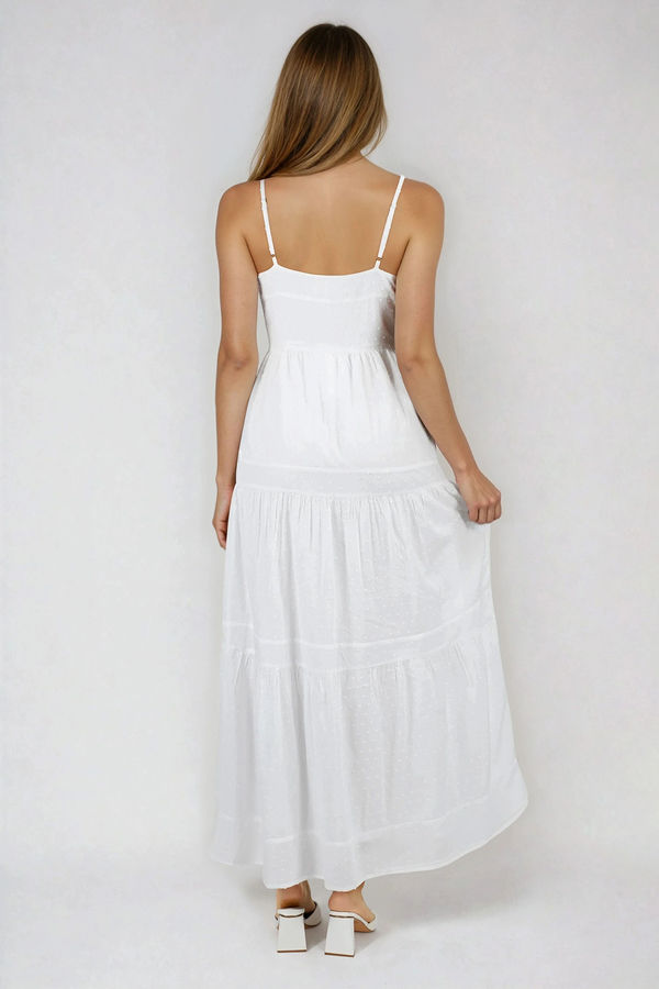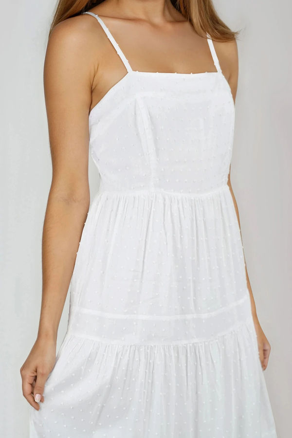 Spring Fling Swiss Dot Tiered Maxi Dress - White