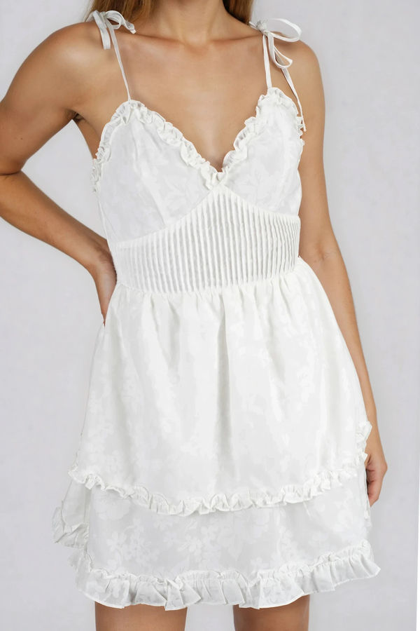 All About the Flowers Ruffle Tie Strap Mini Dress - White