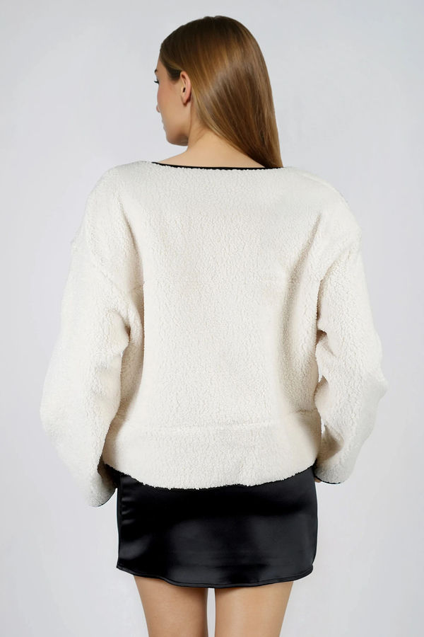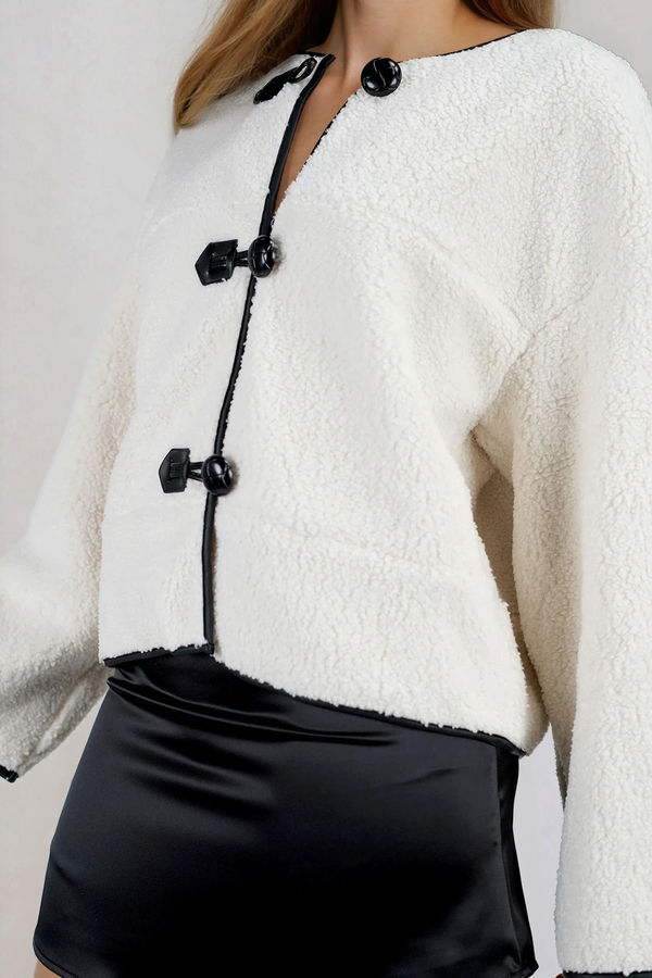 Cloud Comfort Toggle Closure Sherpa Jacket - Ivory Black