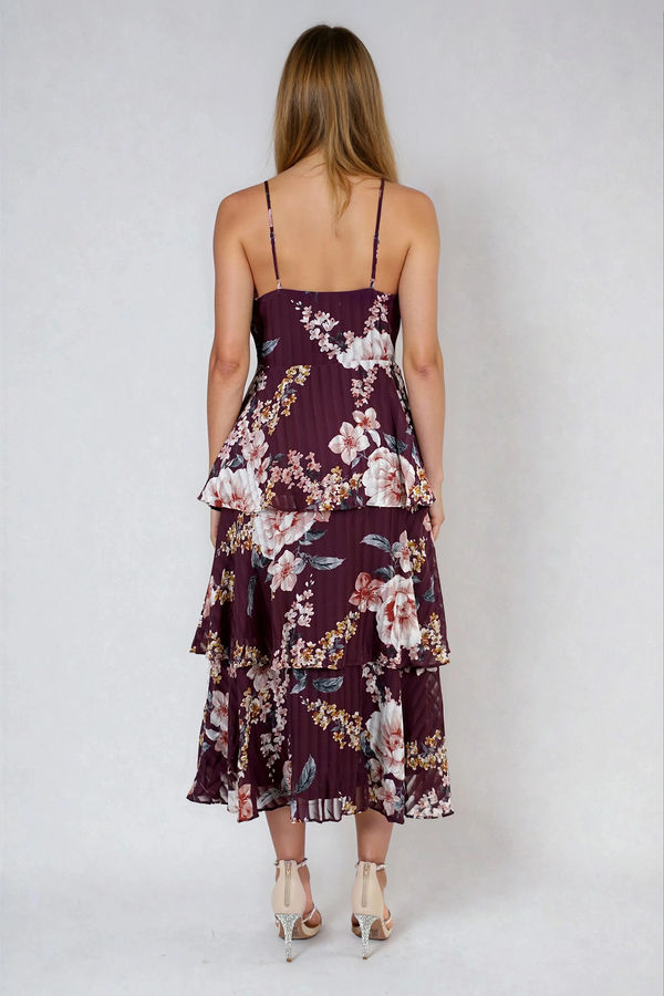 Better in Bloom Floral Tiered Midi Dress - Burgundy White