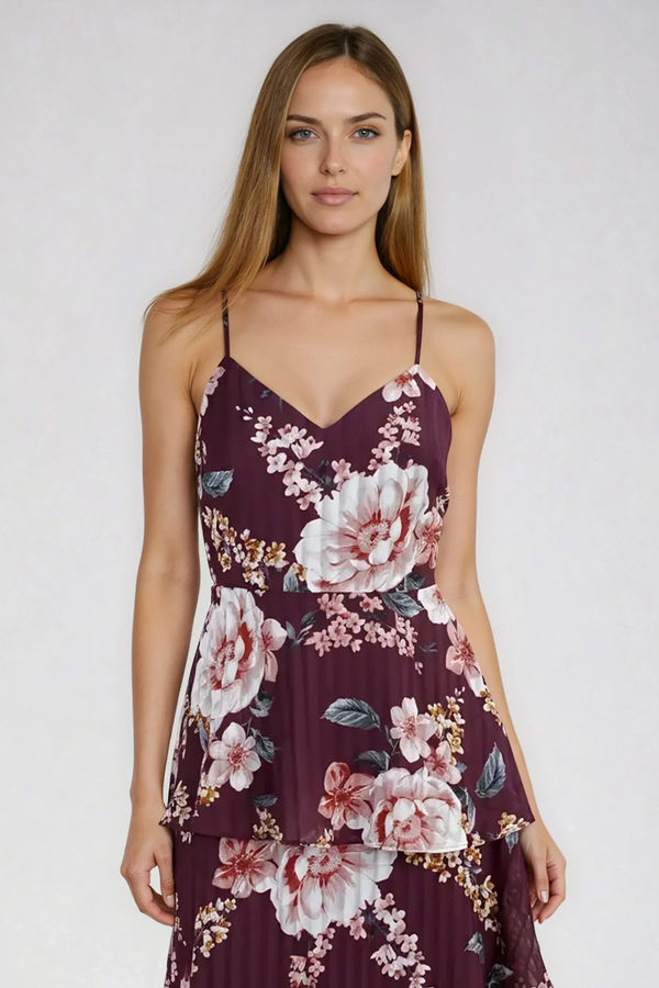 Playful, romantic and made to twirl, this Better in Bloom Floral Tiered Midi Dress in Burgundy White brings effortless charm to every step. Designed with a flattering V-neckline, adjustable straps, and a softly layered skirt, it creates beautiful movement while defining the waist just right. Lightweight and easy to wear, it’s perfect for brunch dates, garden parties, daytime events, vacations, or casual weddings when you want a look that feels fun, feminine, and confidently put-together.