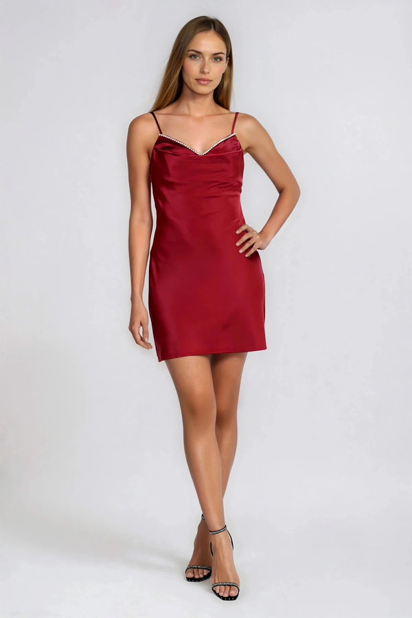 Heart on Fleek Rhinestone Satin Mini Dress - Wine