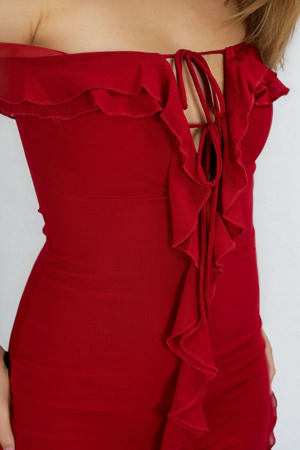 Red in Love Off Shoulder Ruffle Mini Dress - Wine