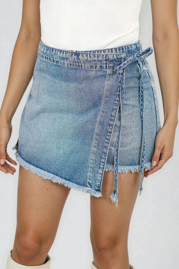 Playful, flirty and made to move, this Vibin' Hard Overlapping Denim Mini Skort in Lt Wash brings the best of both worlds with a skirt look and shorts comfort. Designed with an adjustable side tie, flattering high waist, and raw frayed hem, it hugs just right while keeping things easy and effortless. Perfect for casual brunches, weekend errands, festivals, beach days, or spontaneous summer plans when you want cute style without overthinking it.