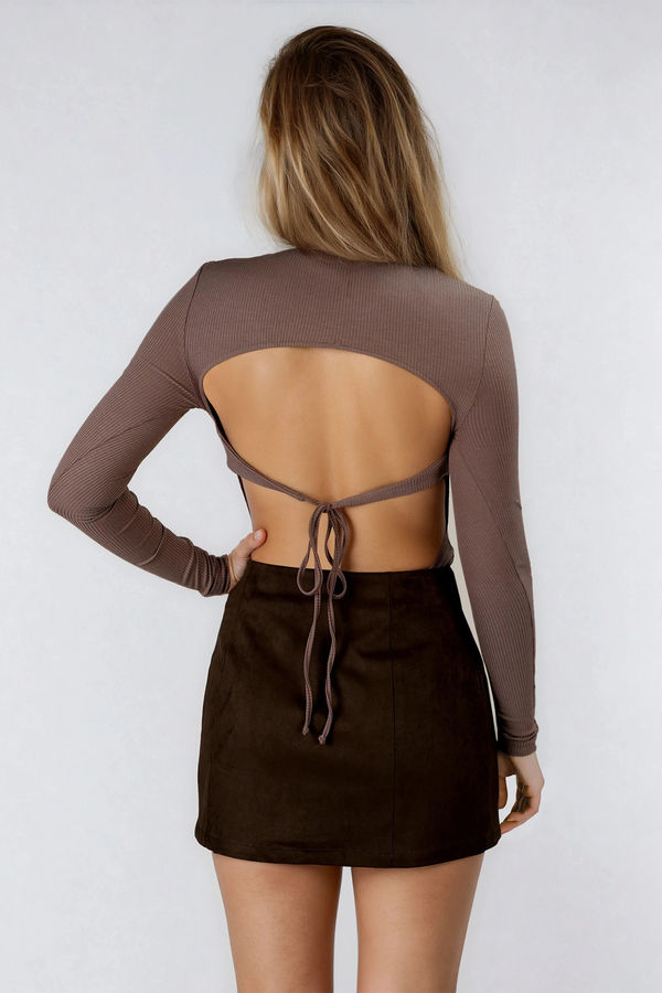 Soft Breeze High Waist Suede Mini Skirt - Chocolate