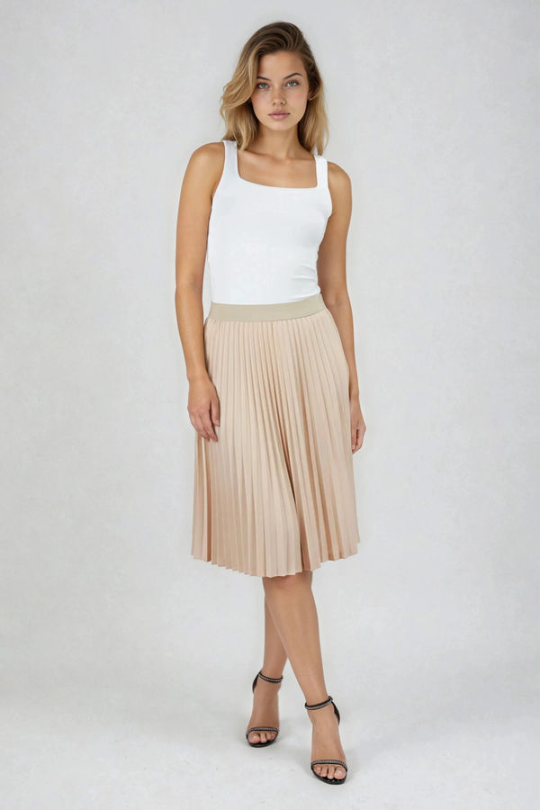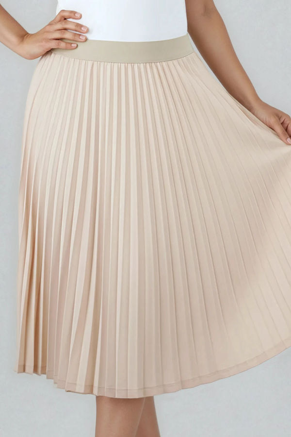Subtle Poise Pleated Satin Midi Skirt - Beige