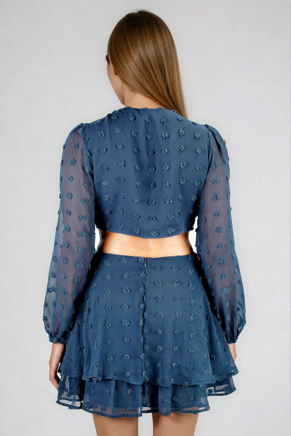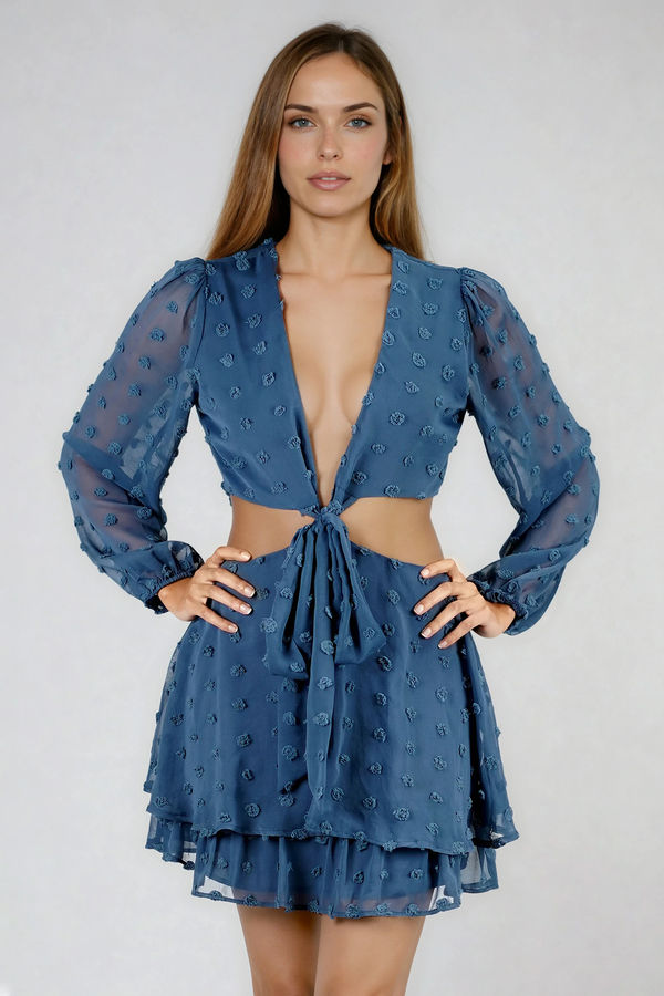 Date Ready Swiss Dot Cutout Mini Dress - Dark Blue