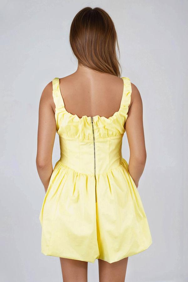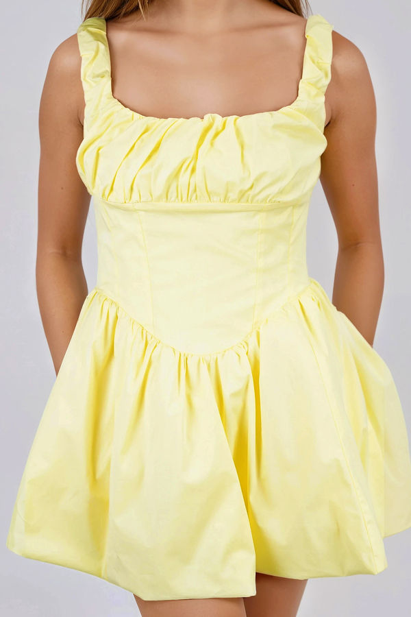 Star Energy Ruffle Bubble Hem Mini Dress - Lemon