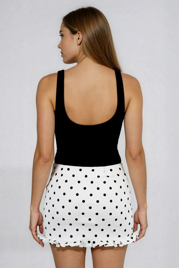 Cute on Cue Polka Dot Ruffle Mini Skirt - White Black
