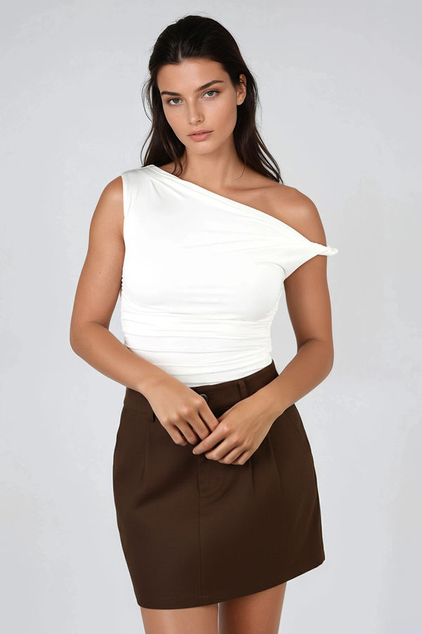 Chic, sculpting style defines this Softly Yours One Shoulder Top in Ivory with a softly draped neckline and subtle ruching that flatters every curve. The smooth, stretchy fabric hugs just right while staying comfortable all day or night. A twisted shoulder detail adds a modern edge, making it easy to dress up or down. Perfect for date nights, dinners, parties, and special events when you want effortless elegance with a little attitude.