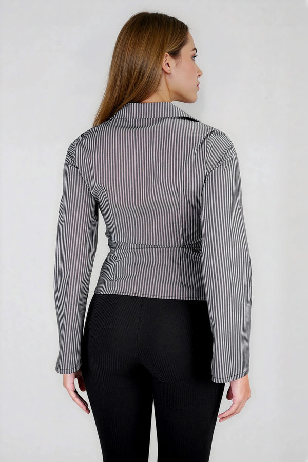 Check out Tobi's Own the Day Pinstripe Long Sleeve Shirt Sleek, confident Own the Day Pinstripe Long Sleeve Shirt in Washed Black sharpens any look with its tailored silhouette and crisp button-front design. Designed to contour just right, it features structured seams, elongated cuffs, and breathable fabric that moves with you. Easy to dress up or down, it pairs perfectly with trousers or denim. Ideal for office days, after-work plans, coffee meetings, or city outings when polished style is a must.
