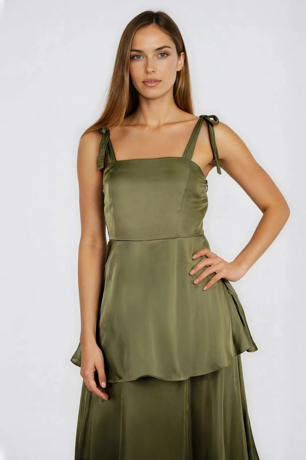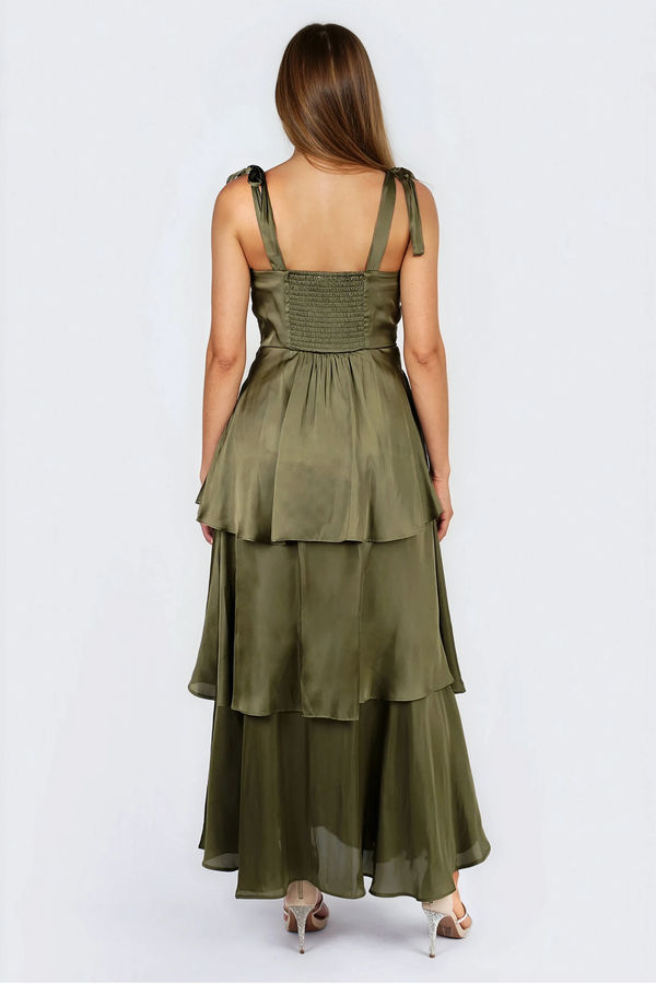 Fresh Prespective Tiered Satin Maxi Dress - Olive